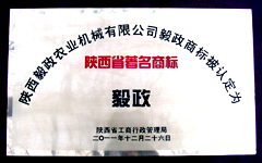 為積極推進(jìn)我省商標(biāo)戰(zhàn)略的實(shí)施,增強(qiáng)企業(yè)品牌意識,增強(qiáng)陜西產(chǎn)品的市場競爭力,根據(jù)《陜西省著名商標(biāo)認(rèn)定與管理暫行規(guī)定》的規(guī)定,經(jīng)研究,陜西省工商行政管理局認(rèn)定陜西毅政農(nóng)業(yè)機(jī)械有限公司的注冊商標(biāo)毅政為陜西省著名商標(biāo)。